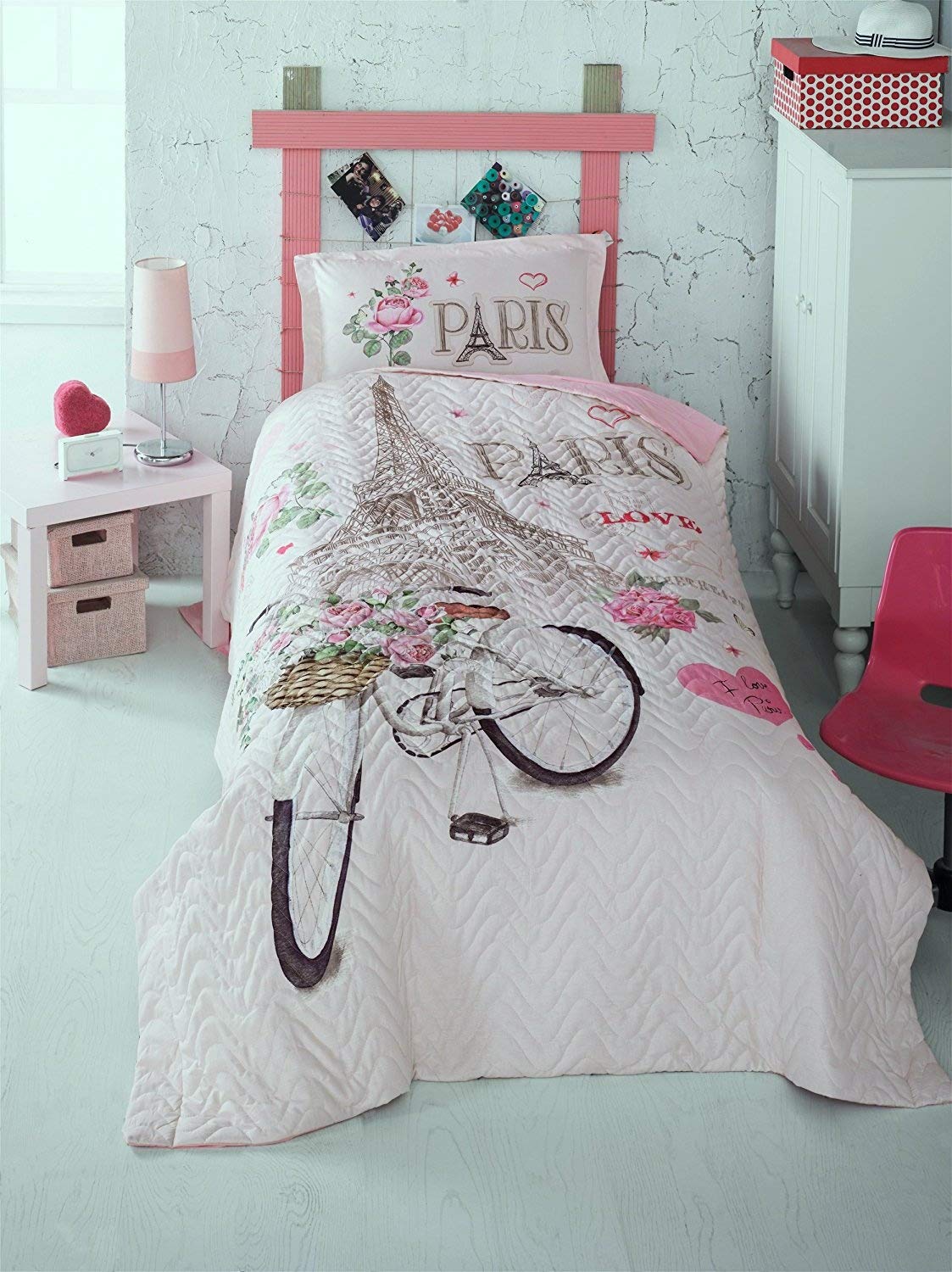 Amazon.com: Bekata 100 Percent Cotton Single/Twin Size Multifunctional Set, Quilted Bedspread/Duvet Cover Set Paris Eiffel Tower Themed Bedding Linens Reversible 3 PCS, Mu: Home & Kitchen