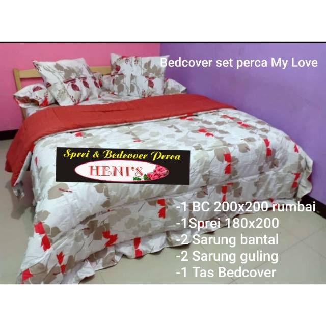 Bedcover set + sprei uk 180x200 bahan perca My Love | Shopee Indonesia