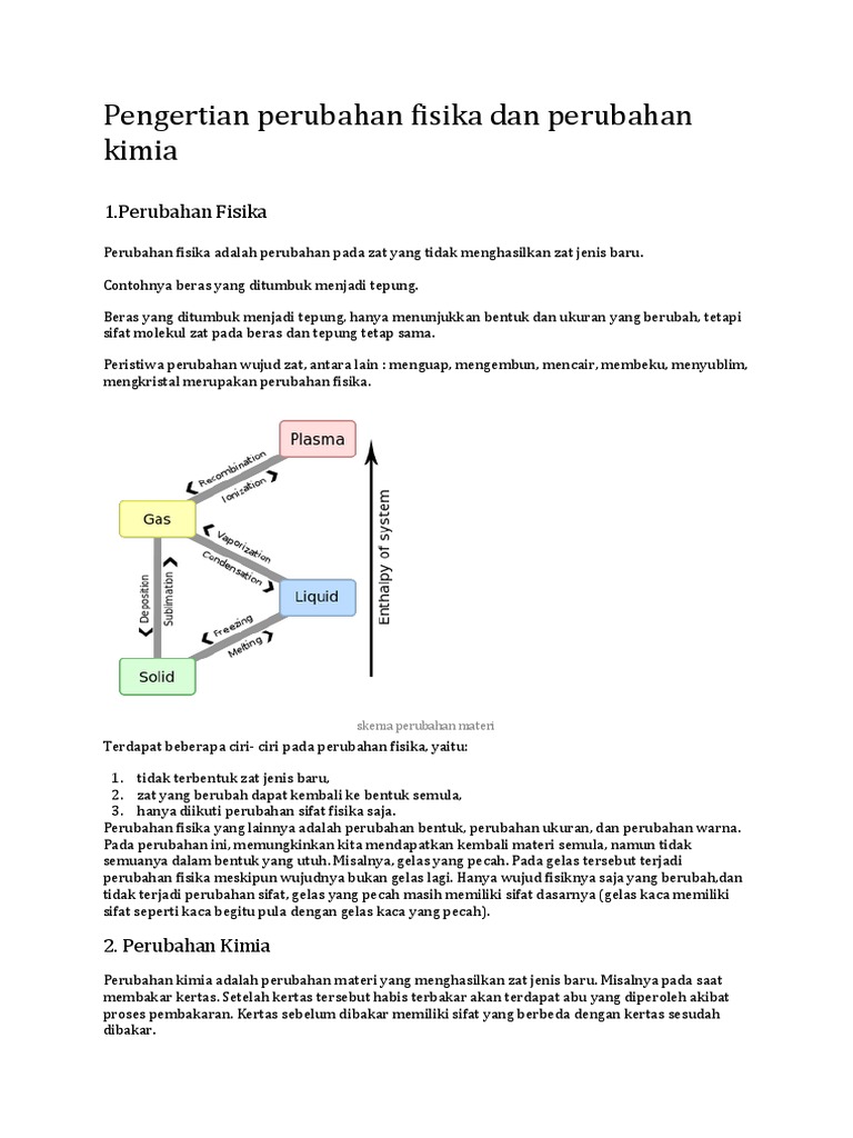 Pengertian Perubahan Fisika Dan Perubahan Kimia