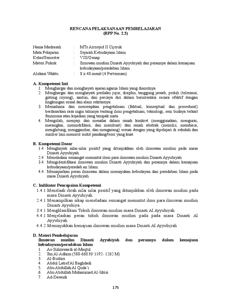 RPP 2.3 Tokoh ilmuwan muslim Dinasti Ayyubiyyah