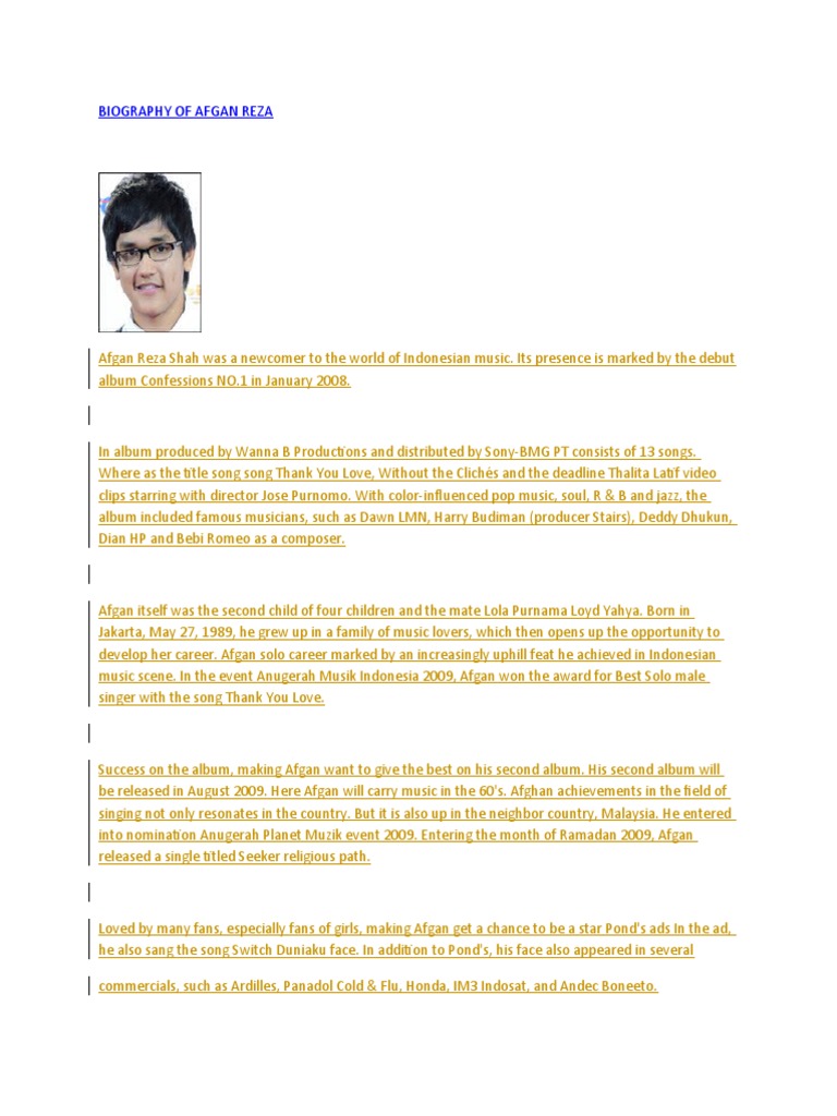 Biografi Afgan Dalam Bahasa Inggris