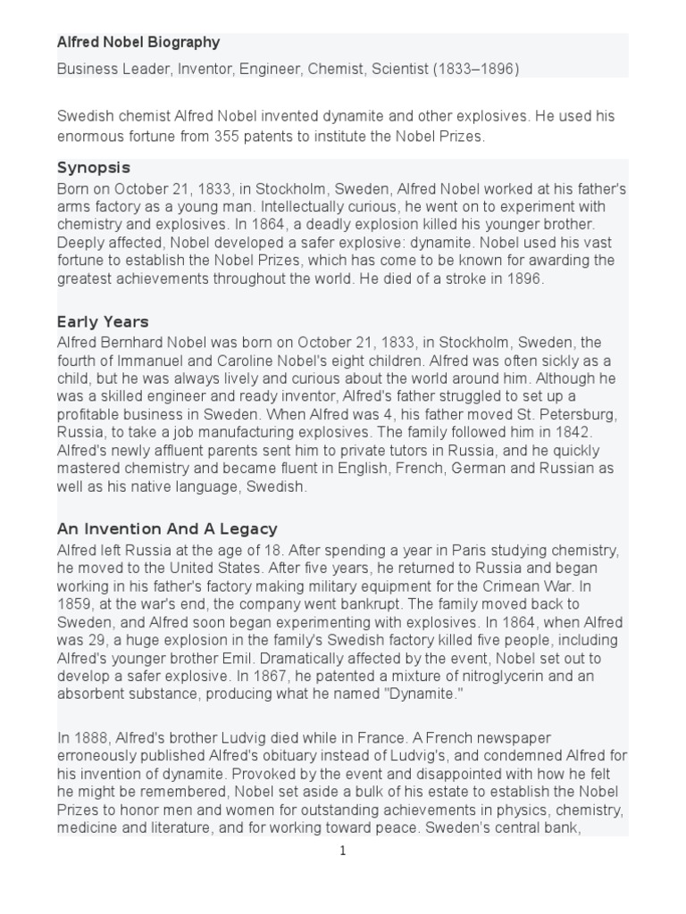 Alfred Nobel’s life and work - NobelPrize.org