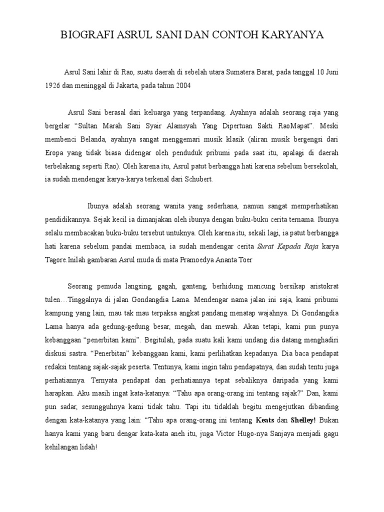Biografi Tokoh Sastra ASRUL SANI - [DOC Document]