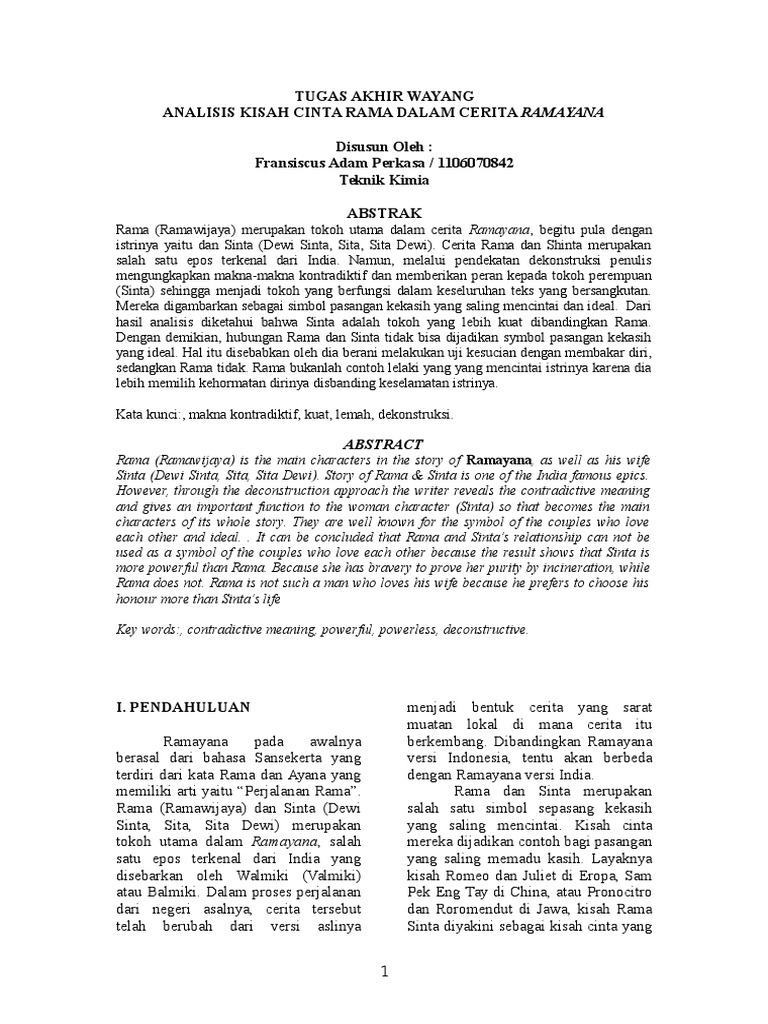 PDF) Menggugat Cinta Rama dalam Cerita Ramayana: Sebuah Kajian Dekonstruksi | Shintya S.S. - Academia.edu
