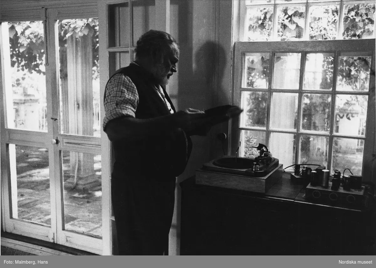 Ernest Hemingway, amerikansk föfattare (1899–1961). “Ernest Hemingway spelar sin favorit Dietrich”. - Nordiska museet / DigitaltMuseum