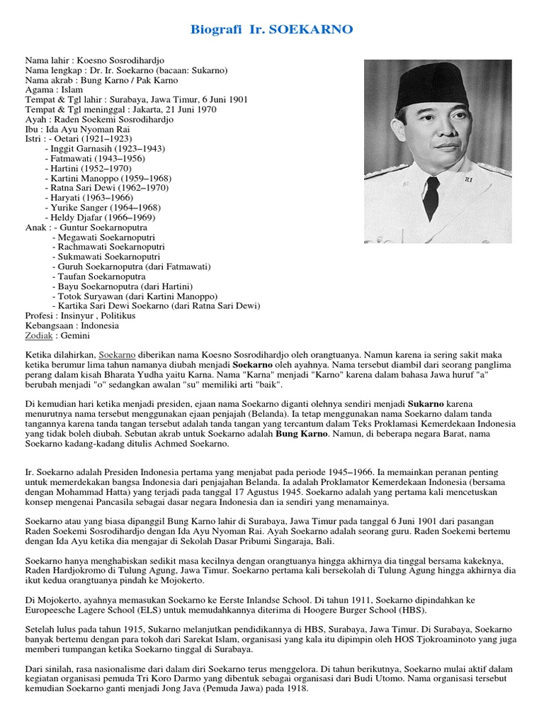 Contoh Biografi Soekarno Dalam Bahasa Inggris - Barisan Contoh