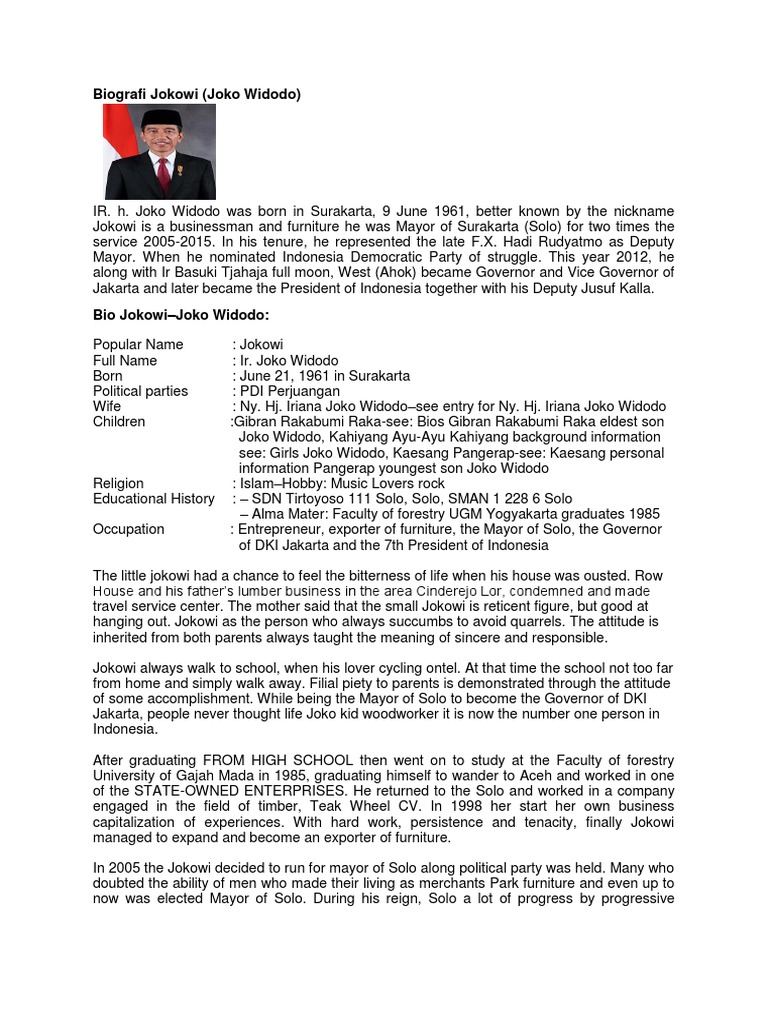 DOC) Biografi Jokowi -Ir. H. Joko Widodo | Kelas P-AA - Academia.edu