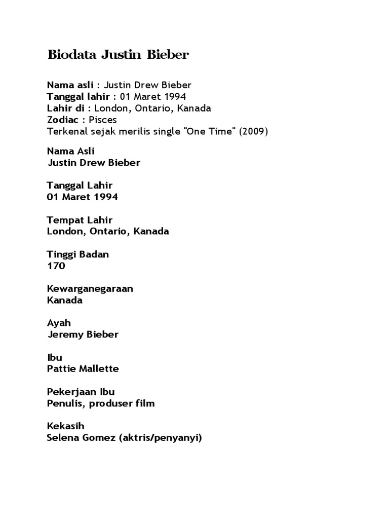 Biodata justin bieber - justin bieber - Wattpad