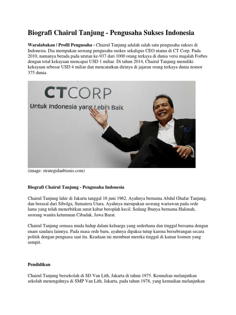 Contoh Biografi Orang Sukses Di Indonesia - 1117 Con