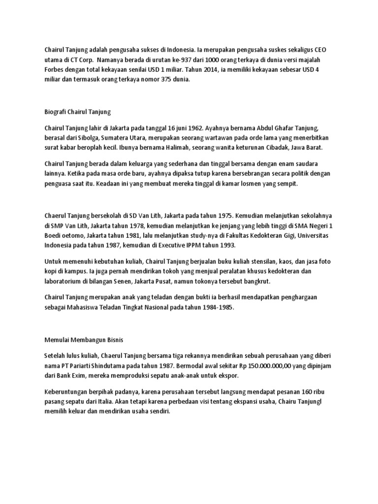 a. siapa orang sukses yang kalian baca? chairul tanjungb. bagaimana cerita chairul tanjung sebelum - Brainly.co.id