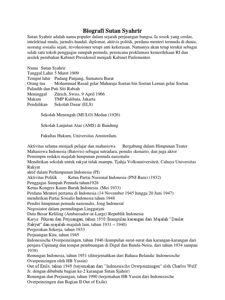 Biografi Sutan Syahrir