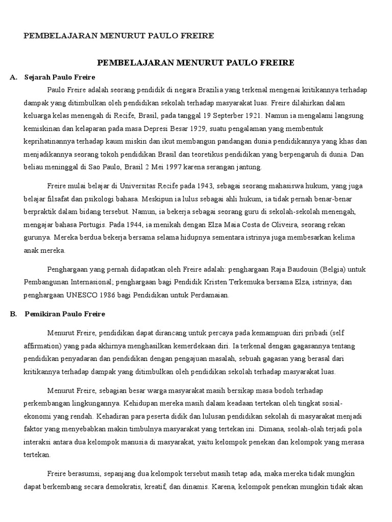 DOC) FILSAFAT PENDIDIKAN PAULO FREIRE | Dewi Oktaviani and Achmad Muslichun - Academia.edu