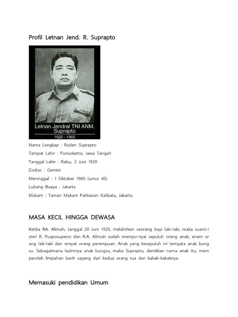 Biografi Singkat || R. SUPRAPTO || Pahlawan Revolusi Tragedi G30spki - YouTube