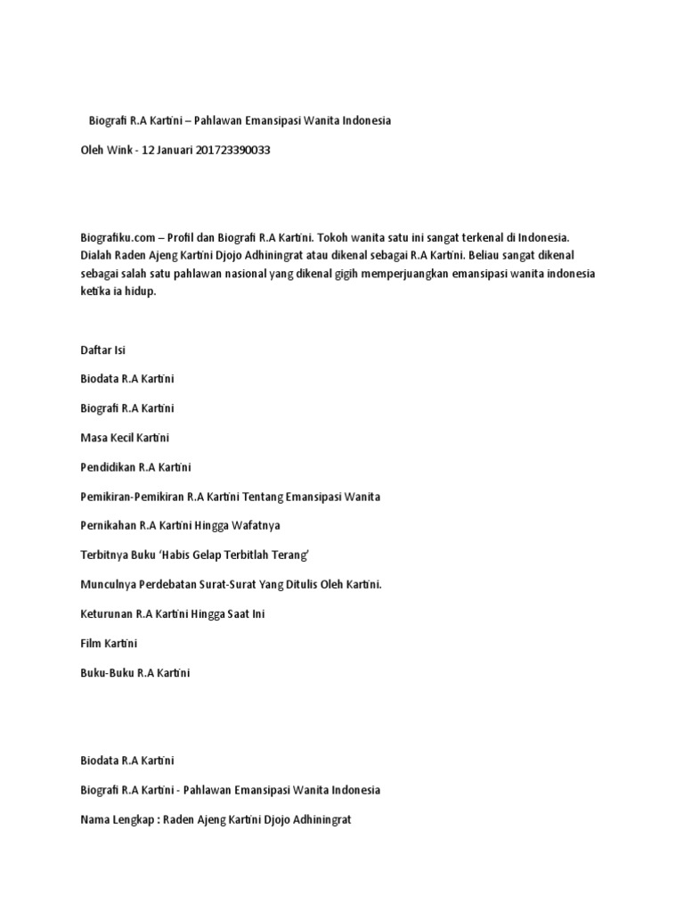 DOC) Biografi RA Kartini | Arga Jr. - Academia.edu