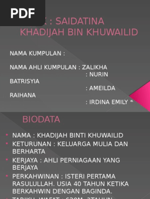 SITI KHADIJAH UMMUL MUKMININ ( Biografi dan Peran Dalam Mendampingi Rasulullah) - PDF Download Gratis