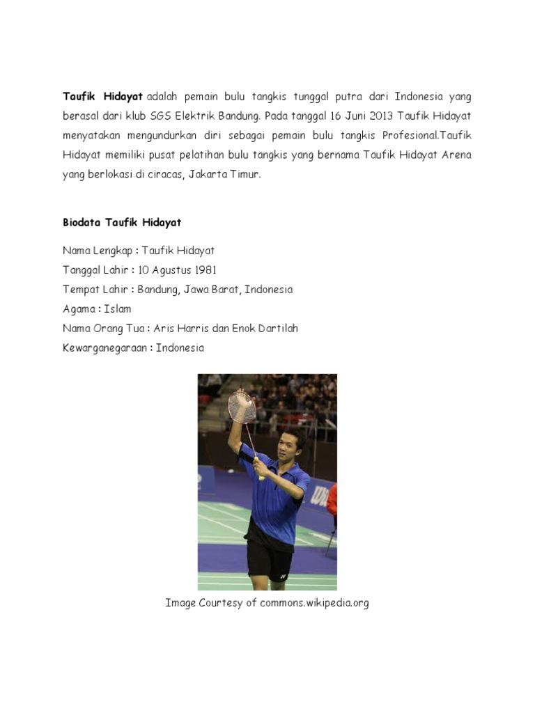 biografi taufik hidayat.. lengkapilah. tolong besok di nilai - Brainly.co.id