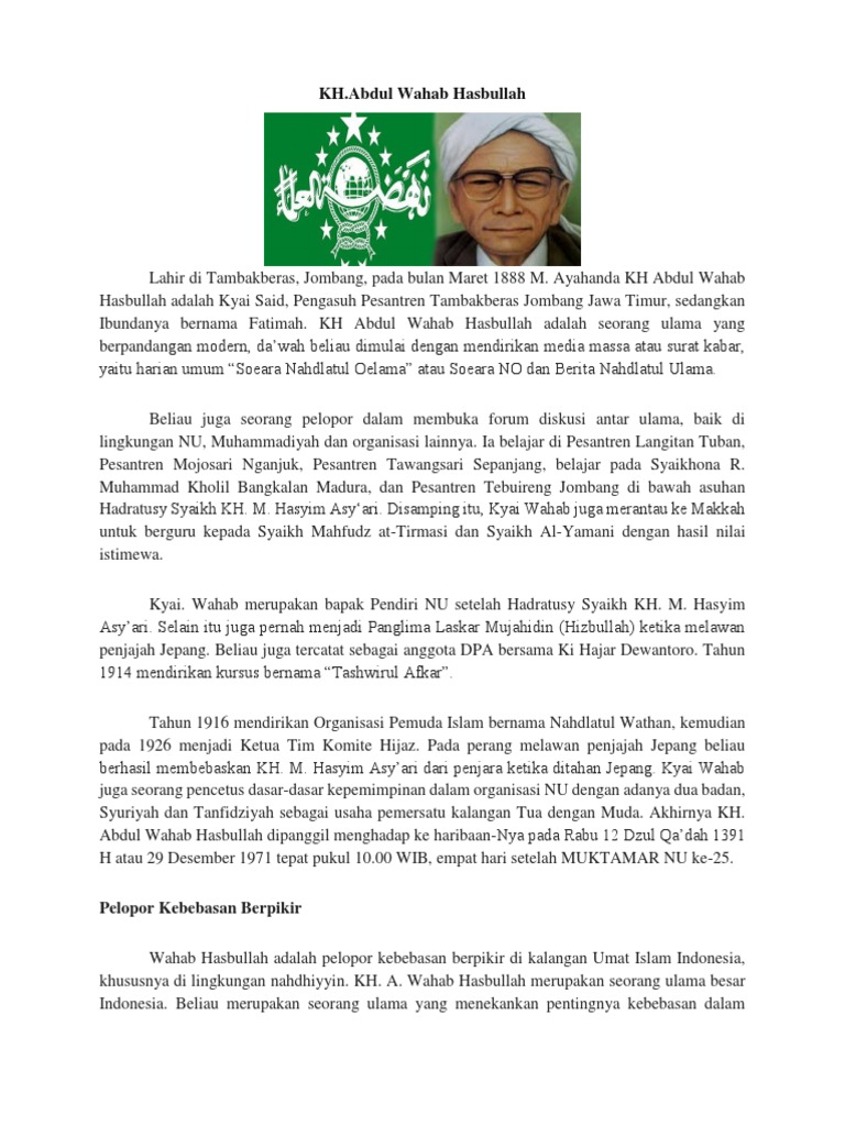 BIOGRAFI KH.ABDUL WAHAB HASBULLAH. (… - Pusaka sakti para nabi | Facebook