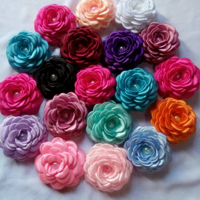Jual aplikasi bunga kain satin /bahan bros/souvenir/headband - Jakarta Selatan - azameehandmade | Tokopedia