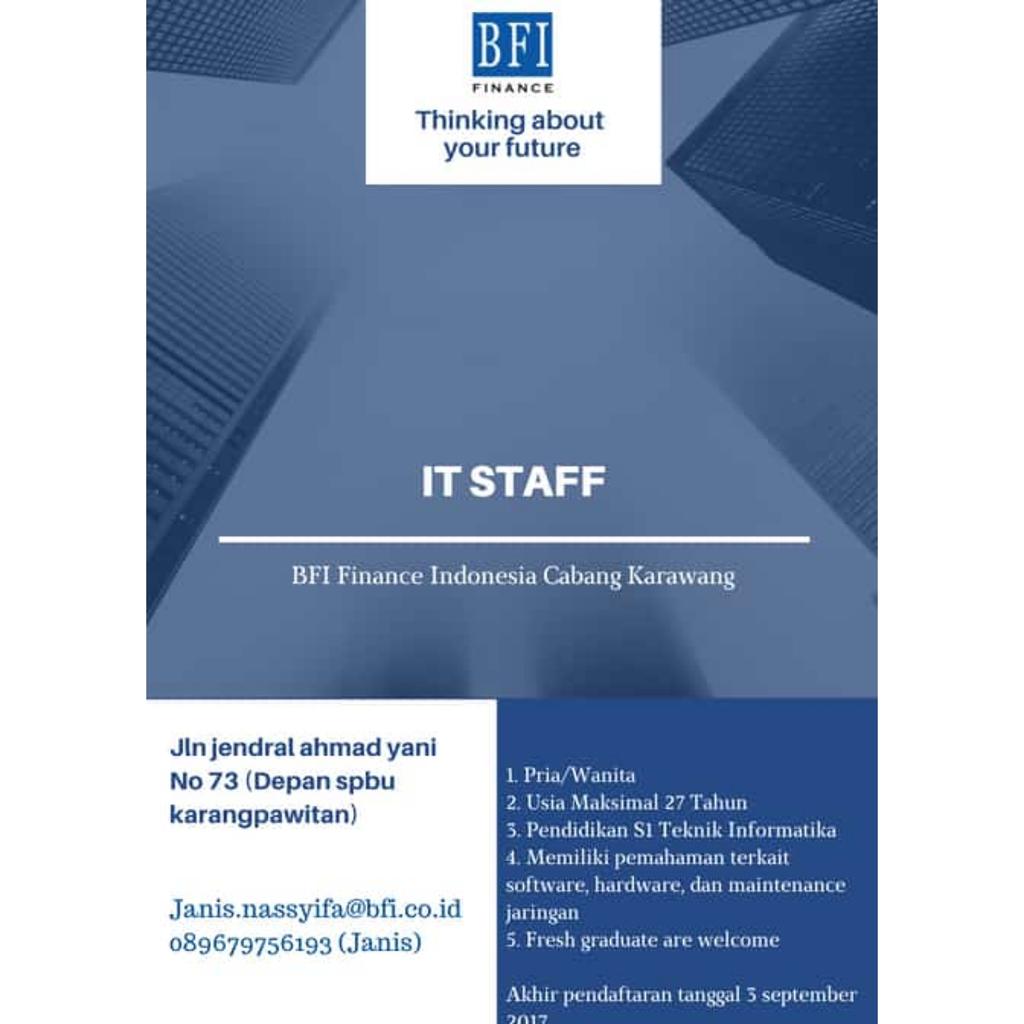 BCC Karawang on Twitter: “Info loker dari PT. BFI Finance Indonesia. Silahkan apply lamaran ke email janis.nassyifa@bfi.co.id paling lambat tanggal 3 September 2018. Semoga sukses . . #infoloker #lokerkarawang #infolokerkarawang2018 #itstaafkarawang #