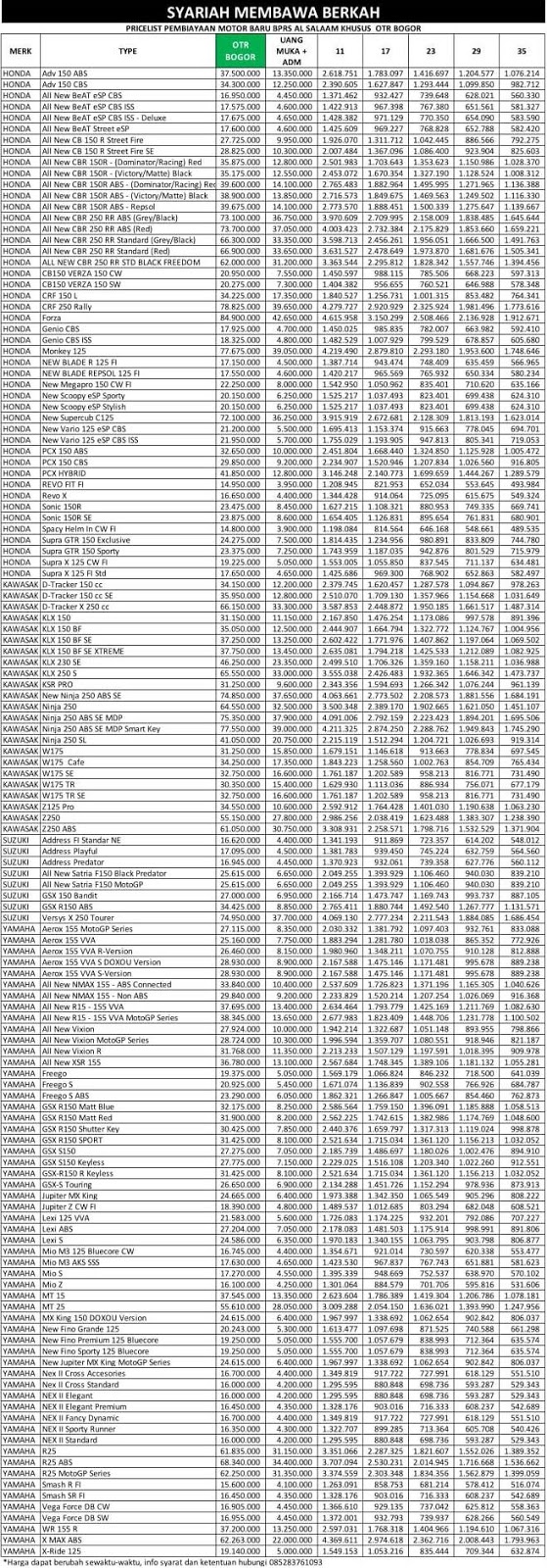 BPRS ALSALAAM KREDIT SYARIAH AREA CILEUNGSI CIBINONG CITEUREUP KLAPANUNGGAL GUNUNG PUTRI DEPOK BOGOR: SEPEDA MOTOR BARU