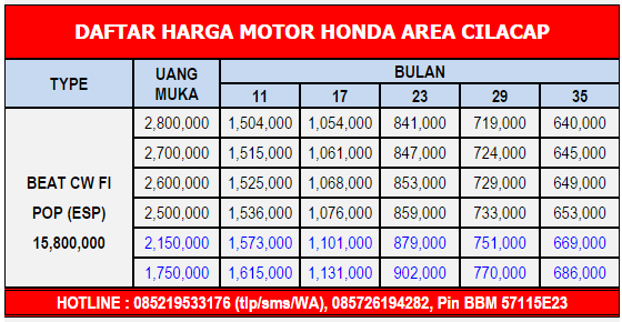 DAFTAR HARGA MOTOR HONDA AREA CILACAP | DAFTAR HARGA HONDA CILACAP