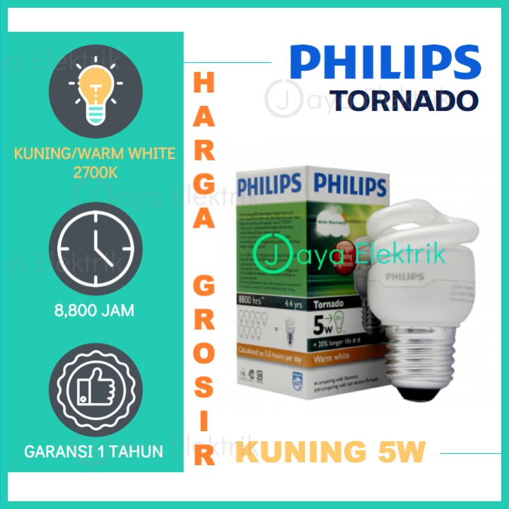 Lampu Philips Tornado 5W 5 Watt 5 W 5Watt Kuning Warm White Grosir Asli - Lampu Spiral Hemat Energi | Shopee Indonesia