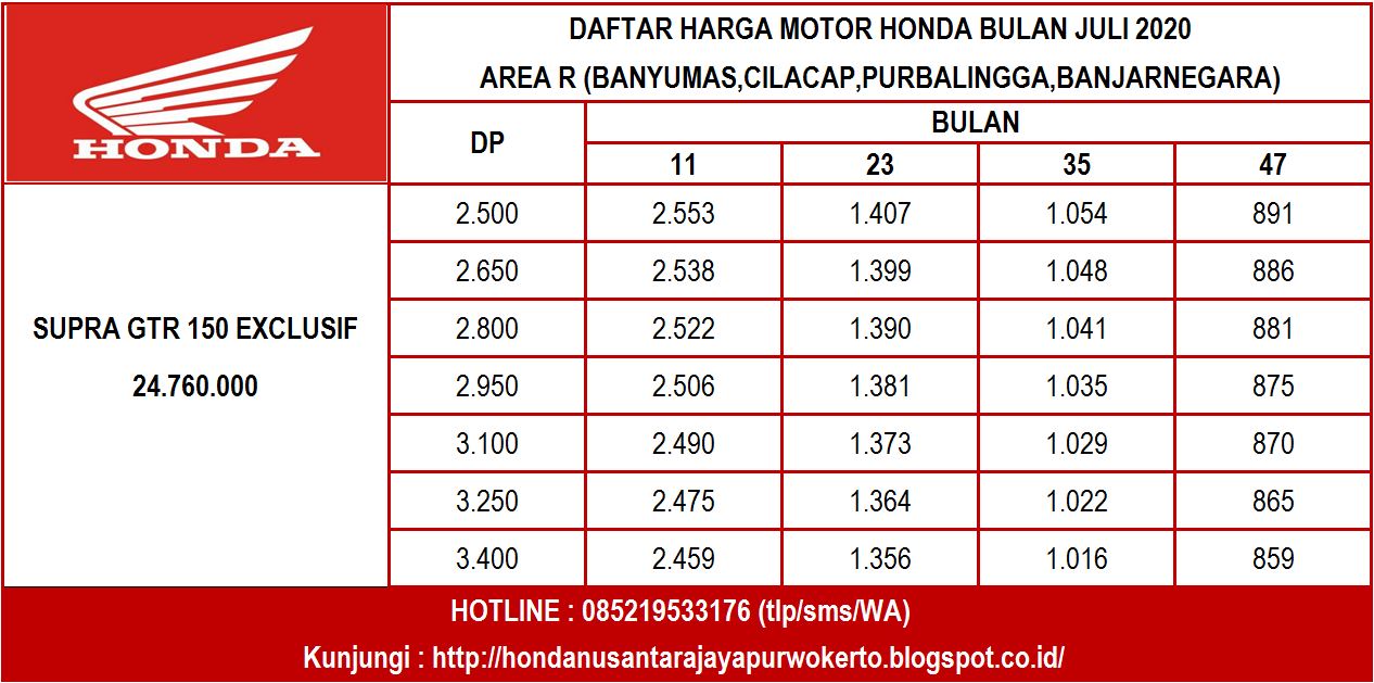 Daftar Harga ~ HONDA NUSANTARA JAYA PURWOKERTO