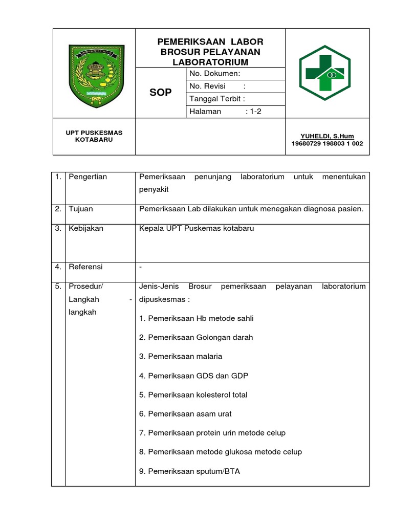 Ep 1 Sop Pemeriksaan Labor Brosur Pelayanan Laboratorium