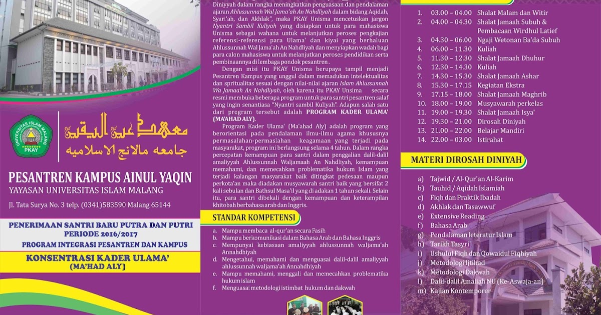 PESANTREN KAMPUS “AINUL YAQIN” UNISMA: BROSUR PESANTREN KAMPUS AINUL YAQIN KONSENTRASI MA’HAD ‘ALY (KADER ULAMA’) TH 2016