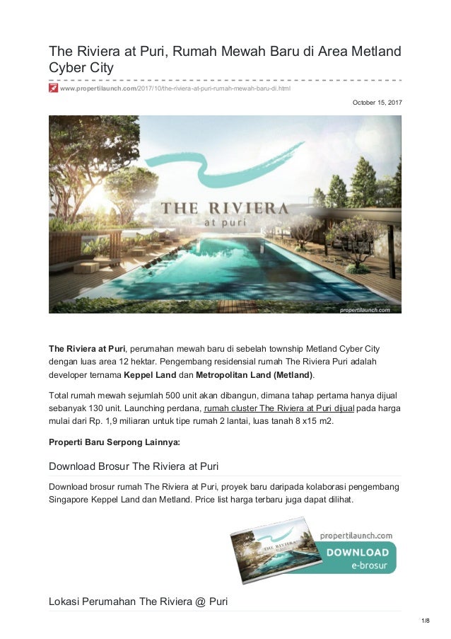 The Riviera Puri, Rumah Mewah Baru di Metland Cyber City