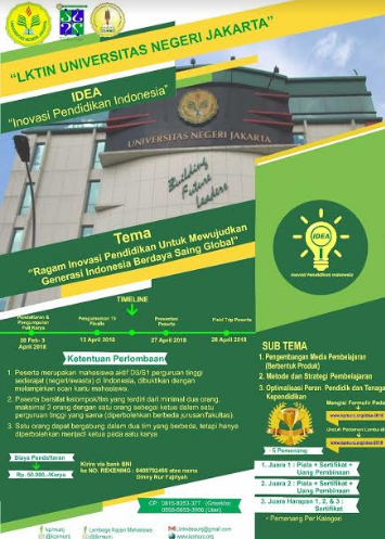 Lomba Karya Tulis Ilmiah Nasional (LKTIN) IDEA 2018 di UNJ - Info Lomba 2020 Terbaru