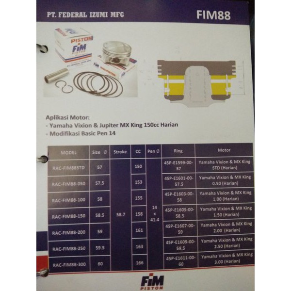 CV590 Piston Kit FIM 88 Vixion Harian | Shopee Indonesia