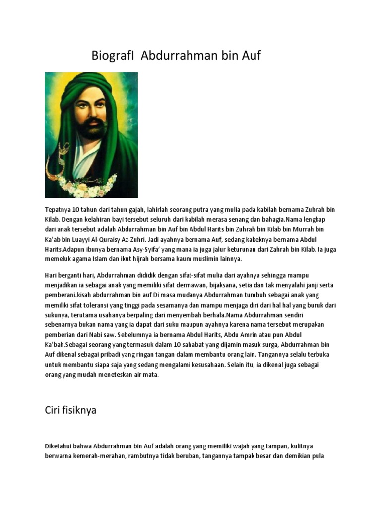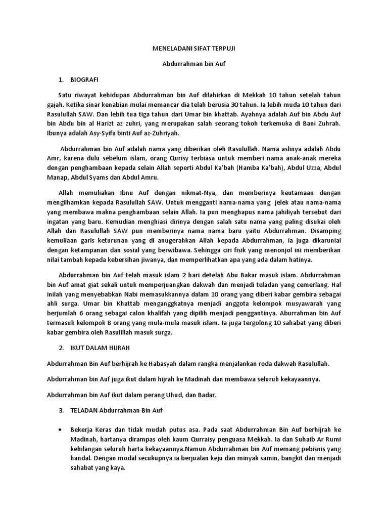 DOC) Abdurrahman bin Auf ra. -Biografi | Herman Setiadireja - Academia.edu