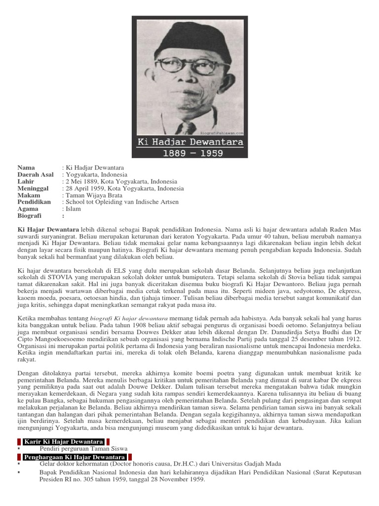 Biogafi Singkat Ki Hajar Dewantara Bahasa Inggris Terbaru Terviral