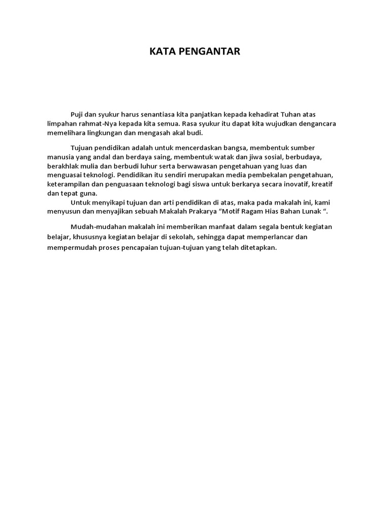Contoh Kata Pengantar Prakarya - Guru Ilmu Sosial