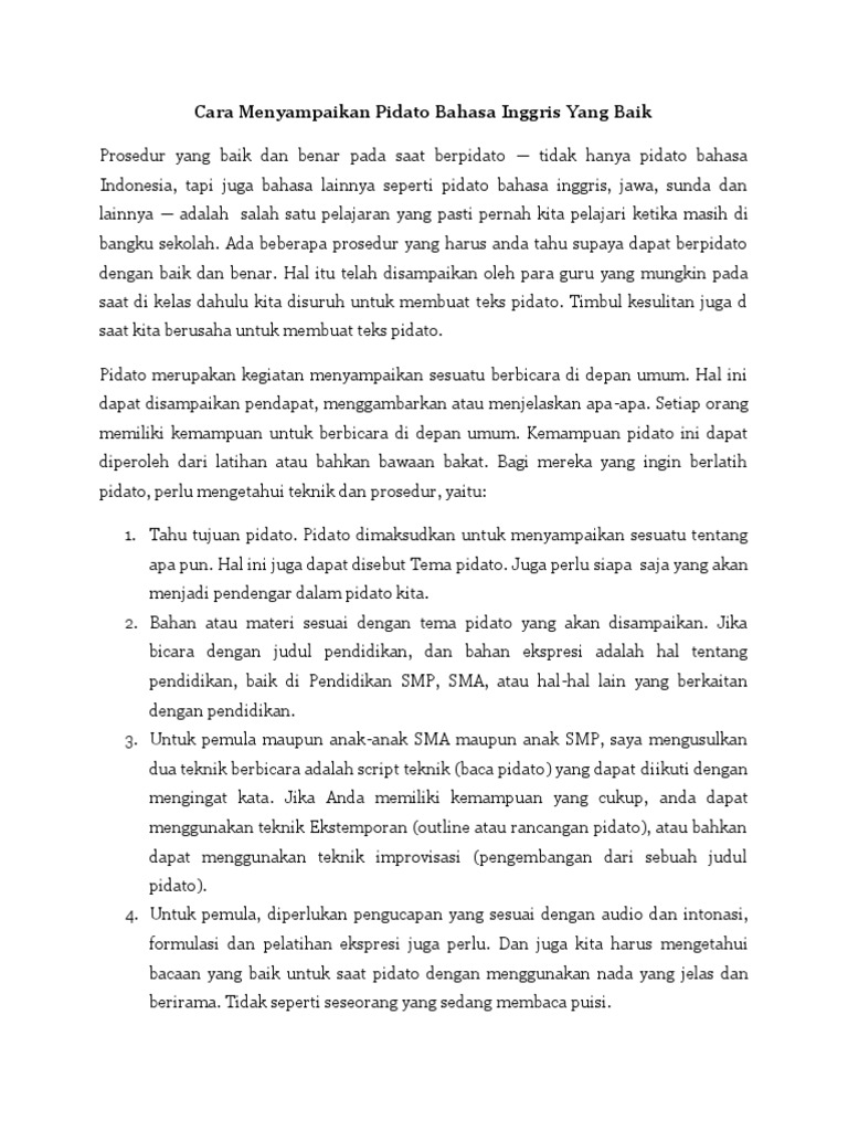 Cara Menyampaikan Pidato Bahasa Inggris Yang Baik Dan Benar