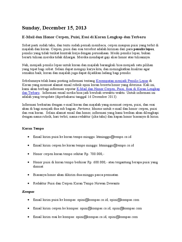 Cara Kirim Cerpen Ke Kompas Terbaru | Blogging, Internet, Freelance Writer