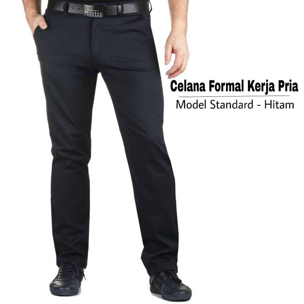 Celana Formal Pria Kerja Kantor Celana Panjang Standard Bahan Kain Hitam Teflon High Quality | Shopee Indonesia