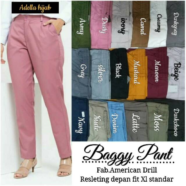 BAGGY PANTS AMERICAN DRILL CELANA KAIN KERJA WANITA POLOS | Lazada …
