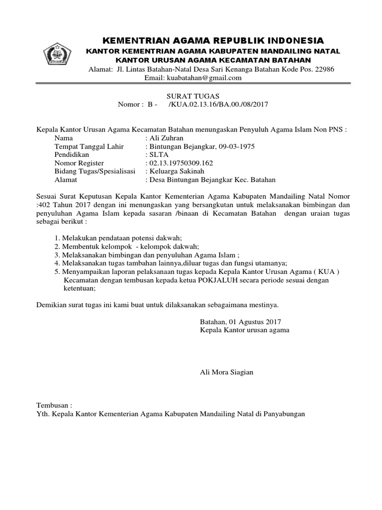 Kua Kecamatan Muara Batang Gadis: Kementerian Agama Republik Indonesia