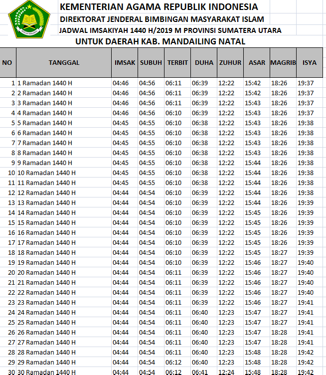 Jadwal Buka Puasa dan Imsakiyah Mandailing Natal 1440 H/ 2019 - Operator Sekolah