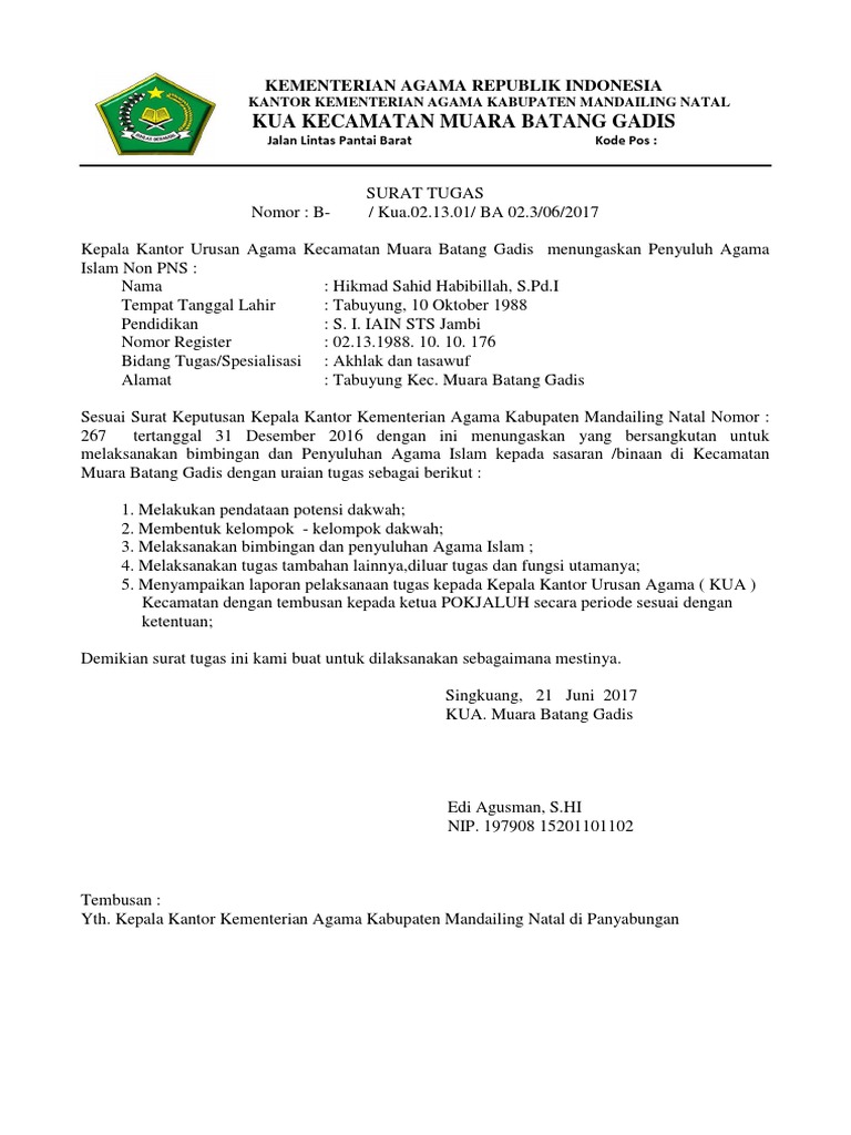 Kua Kecamatan Muara Batang Gadis: Kementerian Agama Republik Indonesia