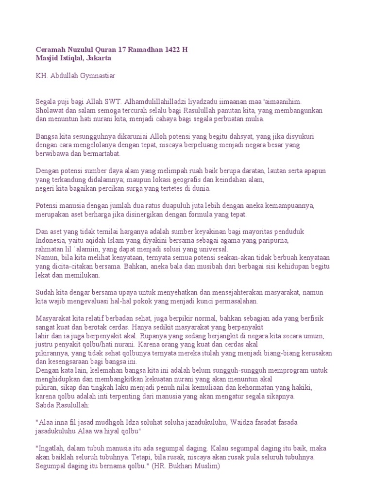 Teks Ceramah Tentang Nuzulul Qur An - Berbagai Teks Penting
