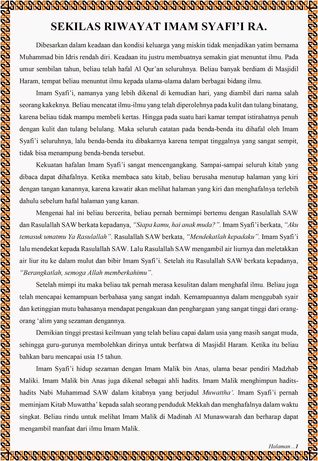 Riwayat Imam Syafi’i Ra, - Majelis Ta’lim Almunawwarah