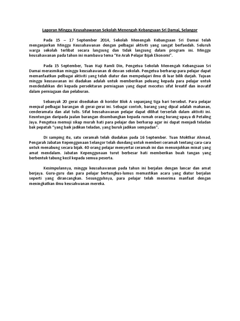 Laporan Minggu Keusahawanan Sekolah Menengah Kebangsaan Sri Damai