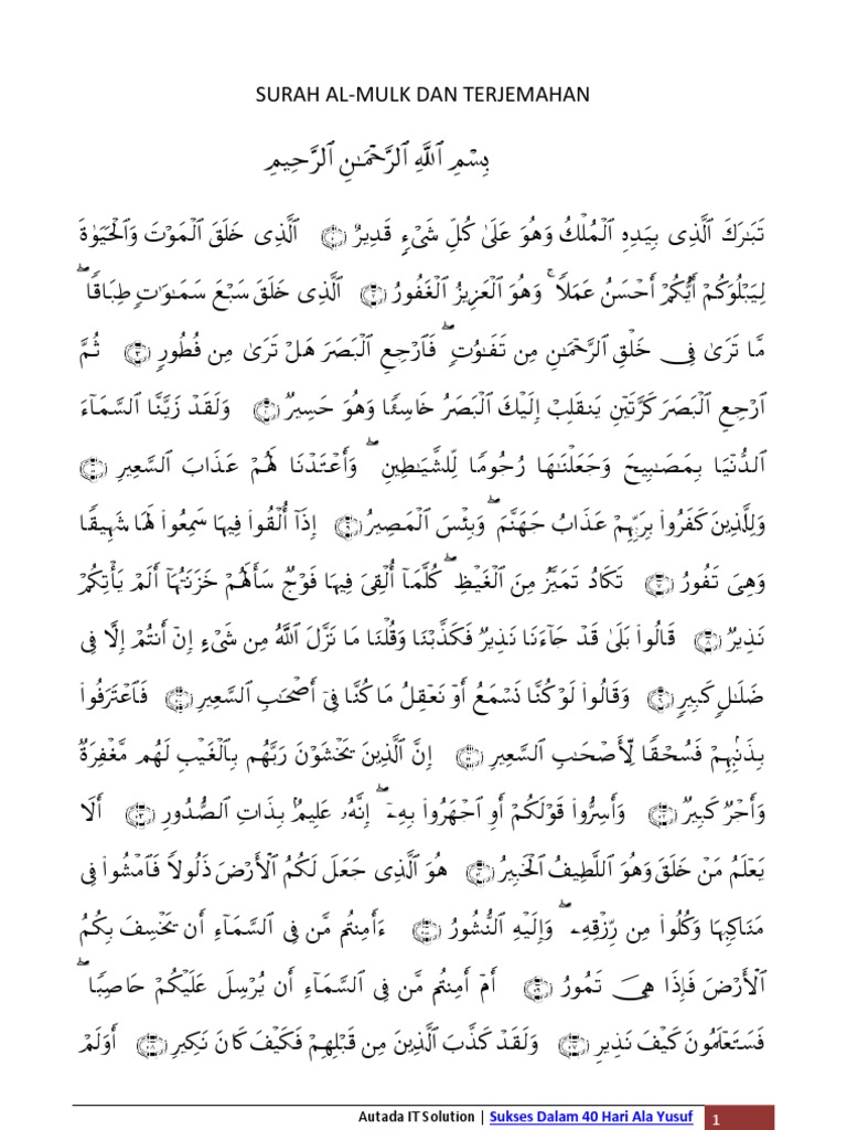 Surat Al-Mulk dan Terjemahan - Al Qur’an dan Terjemahan