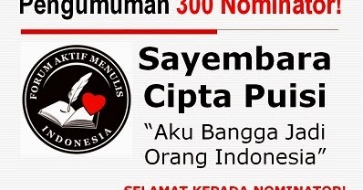 Pengumuman 300 Nominator Sayembara Cipta Puisi Tingkat Nasional Bertema “Aku Bangga Jadi Orang Indonesia”