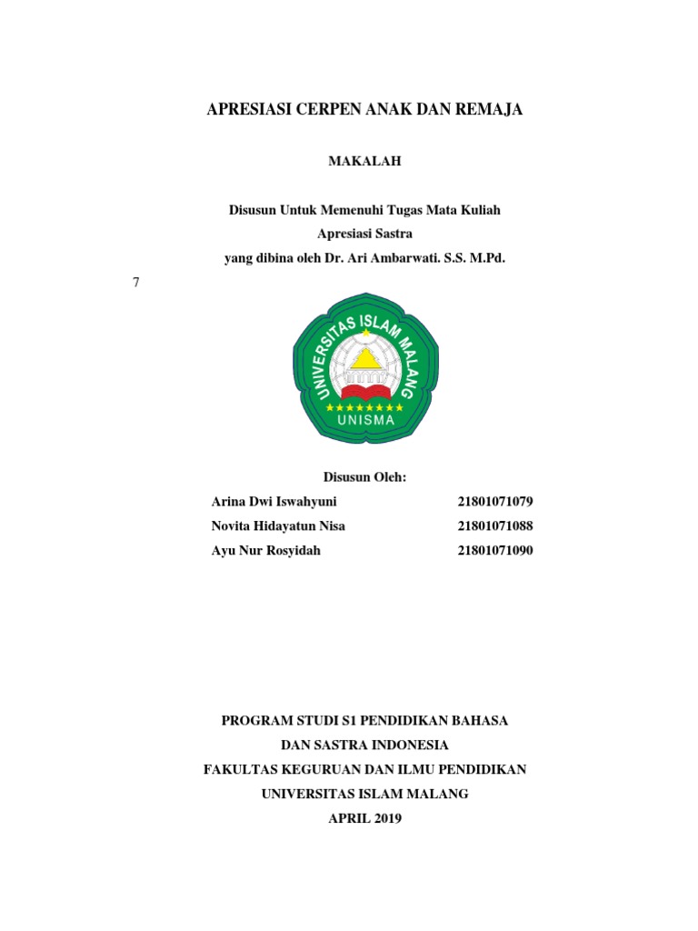 PDF) KECENDERUNGAN UNSUR FIKSIONAL CERPEN ANAK 2000-AN | Kukuh Fadliyatis - Academia.edu