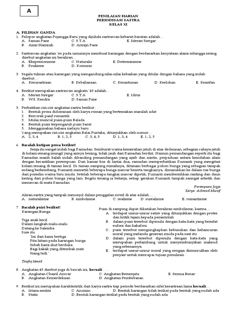 Penilaian Harian Periodisasi Sastra