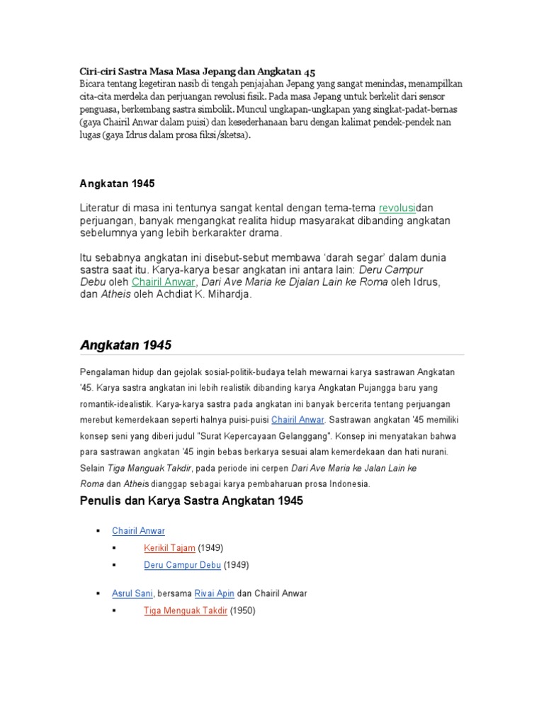 DOC) Menentukan Karakteristik Angkatan Sastra Angkatan 45, 46, Sampai Terbaru.docx | Sir Adam - Academia.edu